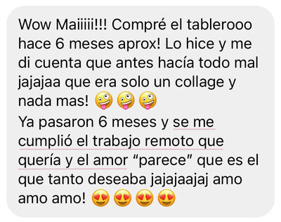 "Antes de Manifiéstalo, no tenía pareja, quería mudarme de país, estaba sufriendo por un ex, tenía bloqueos y muchas creencias limitantes. Mi pareja llegó, justo como lo describí en el bloc de notas de mi teléfono, Y OH SORPRESA estoy viviendo con mi pareja a 7 min de la playa, teniendo un estilo de vida que siempre soñé y alucino porque está realidad ya la había vivido en mi mente mil veces."